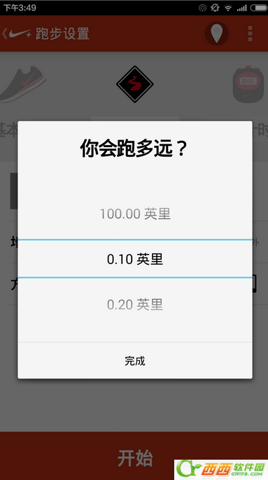 6、你可以选择按照跑步距离来跑步。不同于基础跑步的随性,这个需要你在跑步之前设定好预定距离