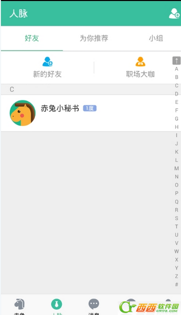 3、点击最下方“人脉”图标,你将会看到你的好友列表。