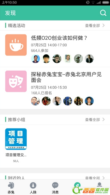7、点击“发现”,这里有精选活动、推荐小组、附近的人,你可以认识好多志同道合的朋友。
