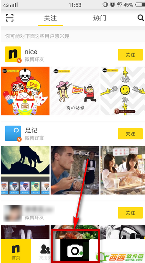 还可以在首页面低端选择“我”,然后再“我”的界面选择右上角的图标,在这里可以找到微博、微信在玩Nice的好友