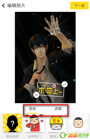 加好贴纸和滤镜 选择下一步 最后添加标签就可以发布了