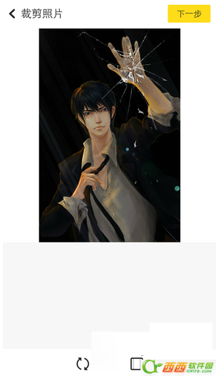 2、选好的图片需要裁剪成正方形,如果你不想裁剪图片,可以选择下方的方块图标(不过最后成型的图片还是正方形的,会带上白底)