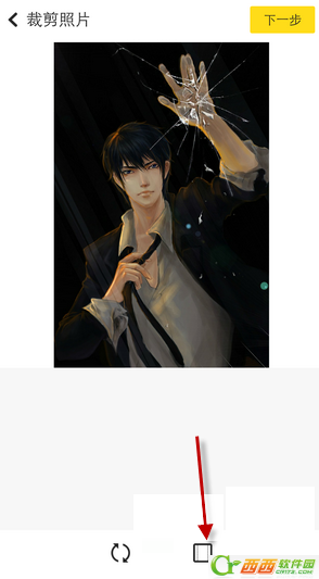 3、选好的图片需要裁剪成正方形,如果你不想裁剪图片,可以选择下方的方块图标(不过最后成型的图片还是正方形的,会带上白底)选好是否剪裁就可以选下一步了