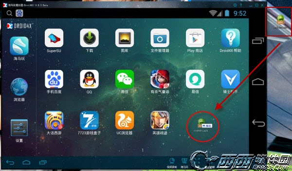 3、接下来就是将安装包给拖进海马玩里边了,不过要注意的是,如果在您的海马玩模拟器当中已经有了其他版本的超能动物联盟,会导致安装失败,所以需要先卸载之前的版本,具体操作如下图。