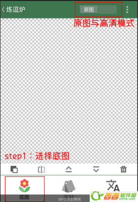 1、进入【首页】-点击【DIY文字】进入炼逗炉页面即可添加趣味文字。点击右下角【底图】图标,选择需要添加DIY文字的图片,图片可选择原图或高清模式。