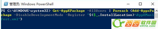 ② 针对Win10应用打不开的情况,请输入以下命令: