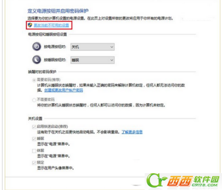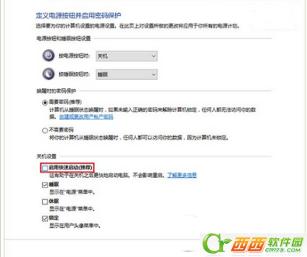 5、然后在窗口下方“关机设置”中取消勾选第一项“启用快速启动(推荐)”,点击“保存修改”即可。