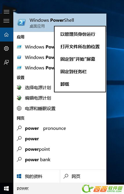 1、点击任务栏中的搜索,输入PowerShell,然后在搜索结果中右键单击PowerShell,选择以管理员身份运行。