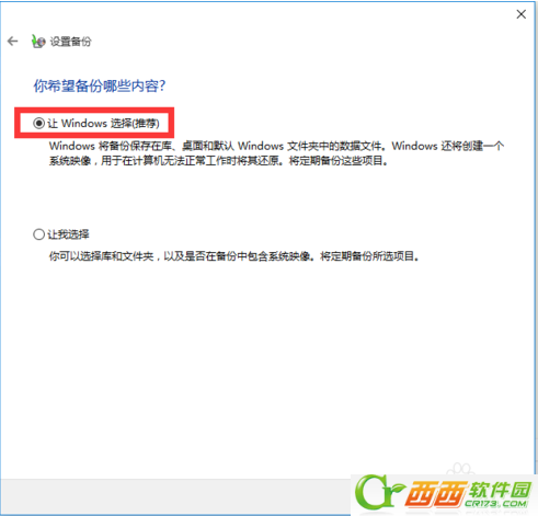 6、接下来显示“备份的内容”选择界面,在此按默认选择(“请Windows选择(推荐)”)项,点击“下一步”按钮。