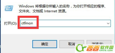 2、从打开的“运行”窗口中,输入命令“ctfmon”并按回车键进行确定,此时输入法将重新加载。