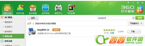 1、通过360软件管家,安装 EasyBCD —— 系统引导重置工具