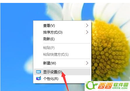 1、首先,在Win10的桌面点击鼠标右键,选择“显示设置”