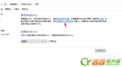 4、然后,点击“更改项目的大小”下面的“设置自定义缩放级别”