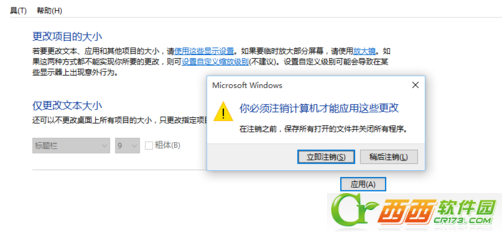 6、然后,计算机会提示你“你必须注销计算机才能应用这些修改”,点击“立即注销”,之后从新进入Windows10,此时程序上的模糊字体就变得清晰了。