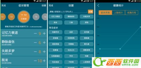 首先需要在症状管理中添加症状,然后每天到这里对自己的症状进行评分,一段时间之后就能在健康统计中看到自己详细的症状走势。