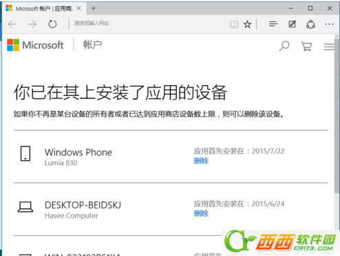 4、之后就会跳转至该网页,上面会显示用户已安装应用的所有设备,删掉没用的设备,就可以腾出指标继续在其他设备上安装软件了。