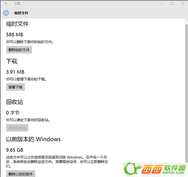 除了清空回收站的选项之外,你还能在临时文件页面当中看到硬盘内临时文件和下载内容的占用空间。Windows系统当中的临时文件是用来管理文档编辑、应用处理和打印任务的,这些文件通常会被自动删除,但有时候也会积累下来。你可以直接点击“删除临时文件”按钮来将它们删除。