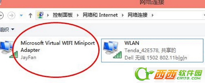 3、稍等片刻之后,在网络和共享中心——“更改适配器设置”界面,出现一个名字为“Microsoft Virtual WIFI Miniport Adapter ”的无线网卡。