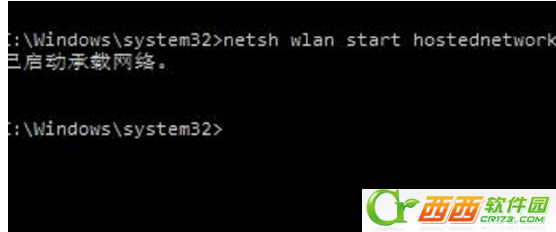 5、稍等片刻,在刚才打开的管理员权限的命令提示符中输入:netsh wlan start hostednetwork并回车