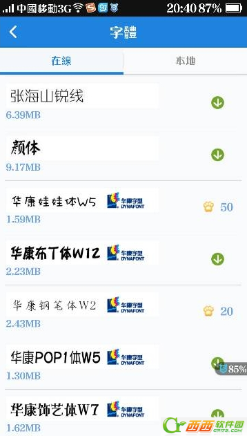 2、然后你就会看到许许多多的字体,选择一个最喜欢的吧,然后给与91桌面你手机的root权限,就可以改变手机的字体啦。