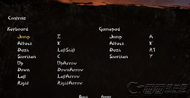 键盘:方向键控制移动,Z键跳跃、X键攻击、左SHIFT键冲刺、C键投掷飞镖。