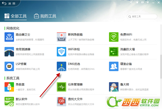 1、在360安全卫士“更多功能”列表中找到“DNS优选”工具进入。