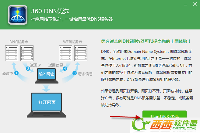 其实导致Win10应用商店下载速度缓慢的重要原因是DNS设置不当所造成的。对此可以使用“360DNS优化”工具来选择最佳DNS来解决这个问题。