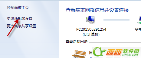 2、待进入“网络和共享中心”界面后,点击左上角的“更改适配器”按钮。