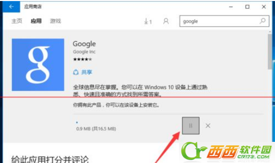 5、接下来返回“Win10应用商店”应用下载界面,点击“暂停”按钮,以暂停当前应用的下载操作。