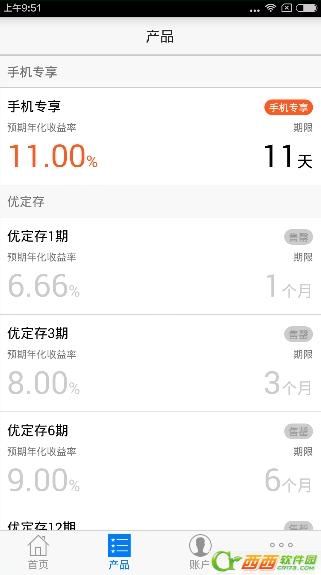 优定存的起投金额1000元,期限有四种,1个月、3个月、6个月和12个月,预期年化收益率分别为6.66%、8%、9%和11%。投资人在退出时收回本金和收益。