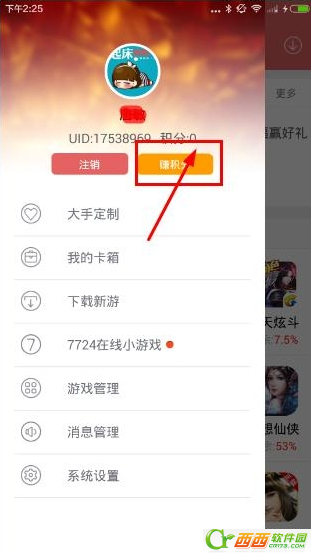 2、在上方注册登录后,将会出现【赚积分】按钮;