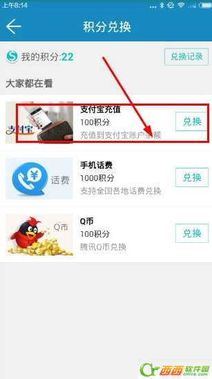 2、在这里您可以支付波提现,手机充话费,换q币的哟,想要一元提现,就点击支付宝充值