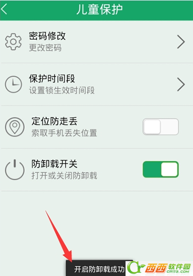 2、会提示我们“开启防卸载成功”,这说明我们已经成功设置防卸载功能了。