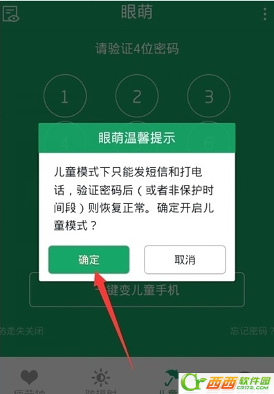 4、完成上述设置后,下面就看看“眼萌防卸载”怎样起到作用吧!但小朋友玩弄你手机就可以开启“儿童模式”。