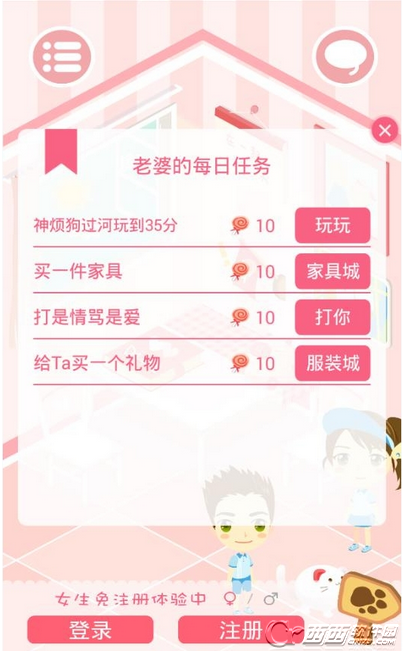 5、如果你是女生,在爱的小窝中就会看到“老婆的每日任务”。