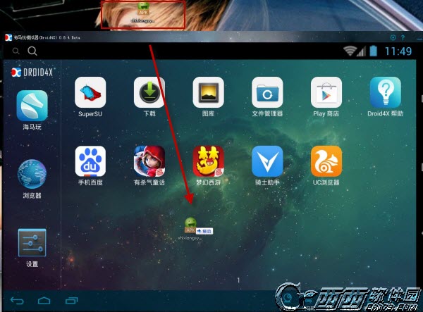 第二步:打开并运行海马玩模拟器,进入软件主界面,将你事先下载好的尸兄apk拖曳到主界面当中,如下图所示。