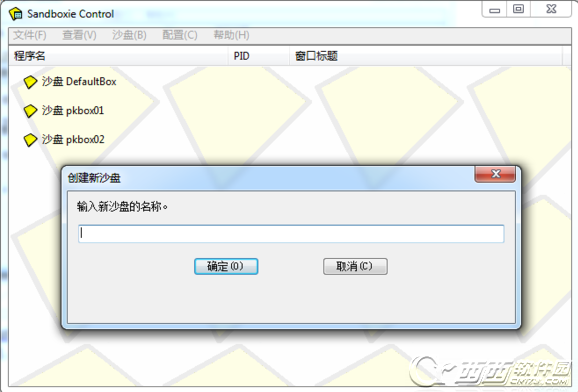 3. 在沙盒的主界面里,选择“沙盘”à“创建新沙盘”,填写名称后按确定。在这里创建了两个沙盘,pkbox01和pkbox02。如果需要多开多个,可以在这里创建多个: