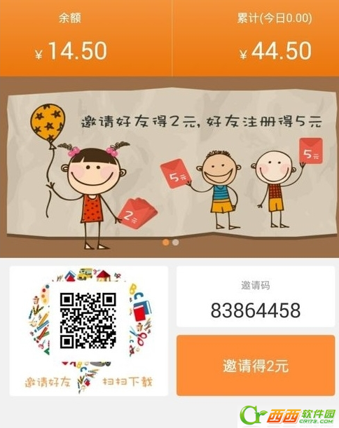 1、进入软件界面后邀请好友安装便可得2元红包。