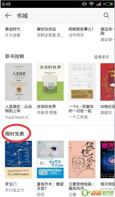 4、不过在书城页面,将页面拖到最底端,这里有“限时免费”书籍。