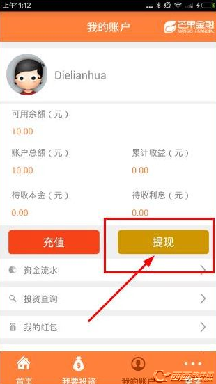这就是小编给大家带来的芒果金融提现的相关介绍了,如果你有需要可以下载使用哦,希望对大家有用,更多芒果金融相关内容可以百度芒果金融西西软件。