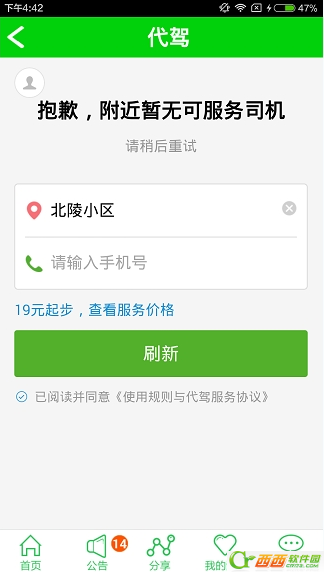 3、输入自己的位置(一般会自动定位),以及手机号,就能够寻找代驾司机啦。但是小编这里没有呢,就只能这样演示下了。