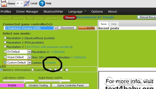 无论你用的是360手柄还是PS手柄,请选最后一个Custom(自定义),然后点Create(创建),见图1