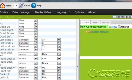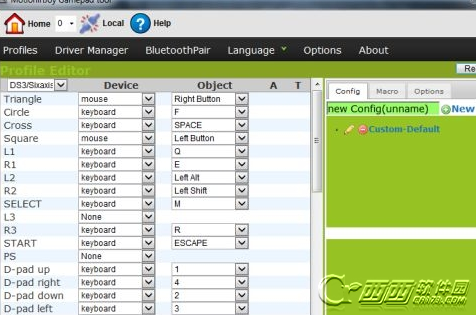 创建一个自定义映射配置,大家可在左上方选择自己的手柄类型,里面有PS,普通游戏手柄,X360和Xbox,选择后键位名称会自动变成相应手柄,我这里为PS。然后按照下图进行配置。见图2和3。修改后记得点保存修改