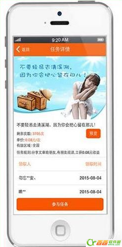 2、领取转发任务转发到朋友圈qq空间微博等,当朋友阅读后,您将会获得一定的收益