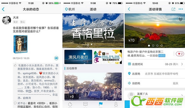 荡客是一款为户外爱好者提供户外线路和活动的 App,用户可以在该平台上找到自己感兴趣的活动并能在线报名参加。在活动详情页面有目的地详情,出发的时间地点以及详细的活动行程安排。同时该应用还具有一定的社交属性,在每个活动页面上都能够看到组织此次活动的俱乐部的相关动态,同时每个领队和用户都有自己的个人主页,可以给自己添加标签,发布照片和文字动态。