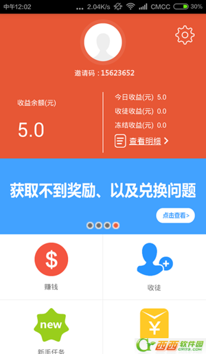 4、邀请好友,即送红包并建立师徒关系,能立即得到6元注册奖励,您也能享受该徒弟和你徒孙所做任务的奖励(由钱鹿官方补贴),其中可得徒弟的10%收入奖励(最高徒弟奖励30%的收入),徒孙的5%的收入奖励,邀请的徒弟徒孙越多,甚至你都不用做任务你都可以赚钱。