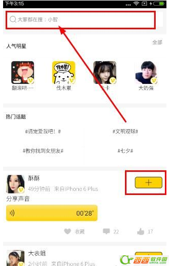 3、点击发现,可以在搜索框中搜索你喜欢的明星的名字,然后出来之后点击加号,,方法同上