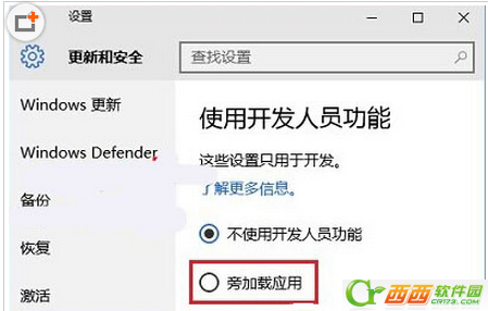 所谓Win10旁加载模式(功能)指的是,不通过微软应用商店(Windows Store),不受任何限制的安装测试第三方应用的运行模式。