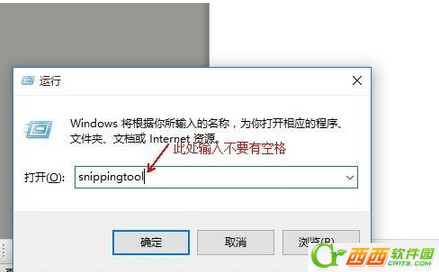 2、在运行对话框中输入“snippingtool”,确定,会直接弹出系统自带截屏工具。