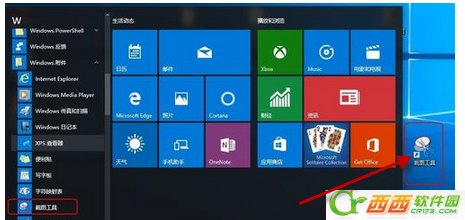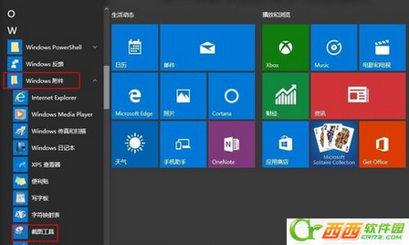 3、还可以左键点击win系统左下角,在弹出的窗口中依次选择“所有应用”→“windows附件”→“截图工具”。